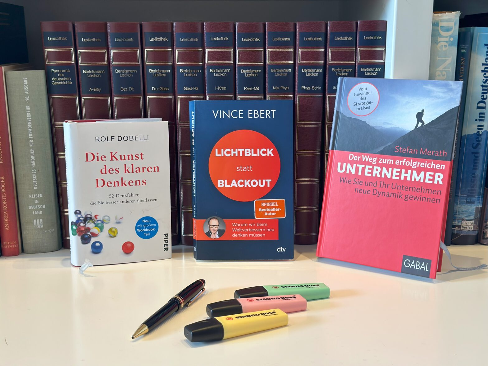 Keines dieser Bücher sollte man digital lesen oder als Hörbuch hören. Wer mich und meine Abneigung gegen totes Holz (aka Papier) kennt, weiß, dass mir dieser Tipp nicht leicht fällt. Aber gerade bei Fachbüchern ist die Möglichkeit, mit Textmaker und Kugelschreiber Notizen im Buch zu machen und schnell hin und her zu blättern, dem digitalen Konsum überlegen. Ich verwende 3 Farben. Gelb für wichtige Informationen, Grün für Definitionen und Pink für Zitate. Dazu kommt noch der Kugelschreiber, um den Kontext zu unterstreichen und Informationen hinzuzufügen.